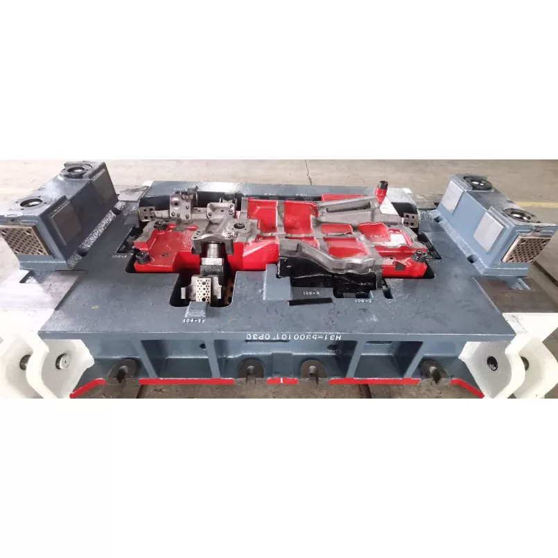 Автокөліктің алдыңғы панелін құрастыру штамптау қалыптары оңтайландырылған дизайн үшін CAE бағдарламалық жасақтамасын пайдаланады, нақты уақытта қалыптау күйін бақылау үшін үш циклды басқару және интеллектуалды бақылау жүйесін қолдана отырып, өнімнің тұрақты сапасын қамтамасыз етеді.