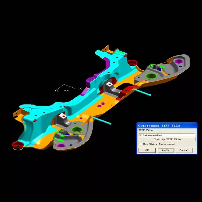 Сақталған дәнекерлеу құрылымдары бар автомобильдің алдыңғы суспензия жинағының штамптау қалыптарының модульдік дизайны, материалды пайдалану ≥85%, көп көлікті өндіруге тез зеңді өзгертуге бейімделу және дәнекерлеу деформациясын бақылау арқылы жақсартылған құрастыру дәлдігі мен құрылымдық беріктігі.