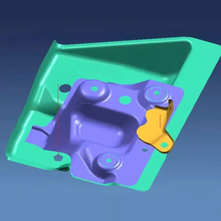 Автокөлік шағын кронштейнді штамптау қалыптары қуыстарды, бағыттаушы жүйелерді және басқа компоненттерді тазарту үшін UG және CATIA сияқты толық 3D дизайн бағдарламалық құралын пайдаланады, ұтымды қалып құрылымын және техникалық қызмет көрсетудің қарапайымдылығын қамтамасыз етеді.
